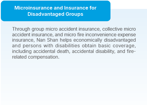 Nan Shan Life takes a “sustainable health” approach, grounded in its mission as a public service-oriented enterprise and its vision to meet clients' holistic health needs across wellness and healthcare. To this end, the Company has established the "Health Protection Circle" platform and offers a variety of insurance solutions with sustainable features. By enhancing transparency and convenience throughout the sales, underwriting, and claims processes, Nan Shan Life continues to advance its commitment to sustainable insurance.