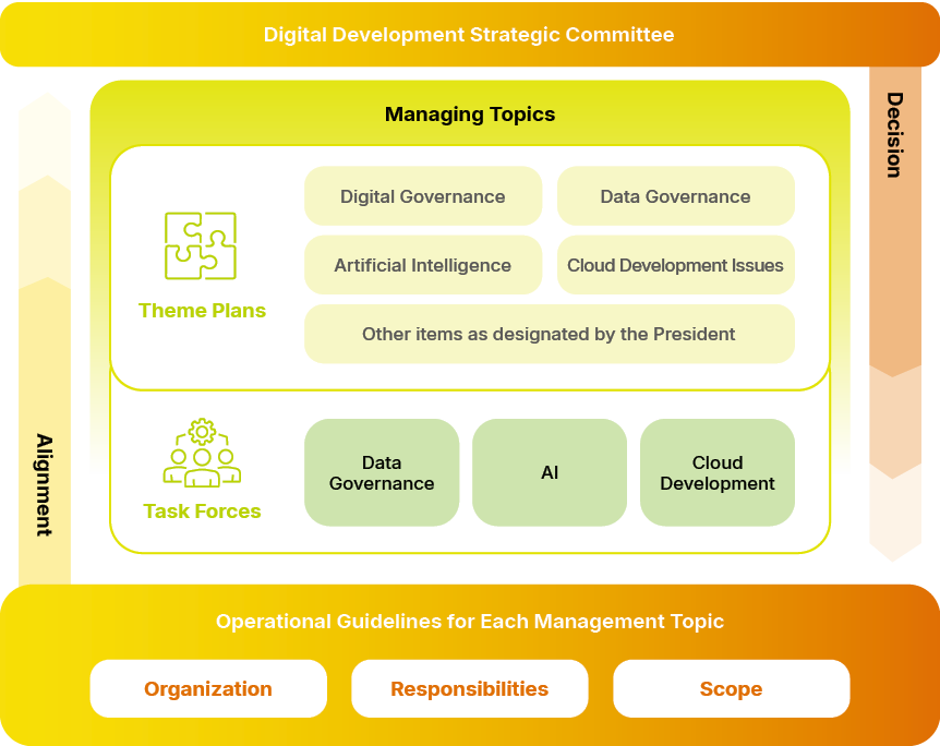 To strengthen leadership and decision-making in digital development, Nan Shan Life established the Digital Development Strategy Committee (DDSC), chaired by the President and including the Chief Strategy Officer, Chief Digital Officer, Chief Information Officer, Chief Information Security Officer, the Head of the Experience Governance and Design Center, and other department heads. Quarterly meetings are held to align on digital vision and major strategies, coordinate cross-departmental resources, and ensure effective implementation and progress of digital initiatives.