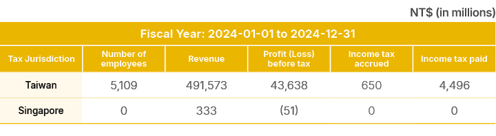 Nan Shan Life is committed to complying with the tax regulations in all jurisdictions where it operates, in alignment with international tax standards. The Company ensures accurate tax calculation and fulfills its tax obligations by completing filings within statutory deadlines.