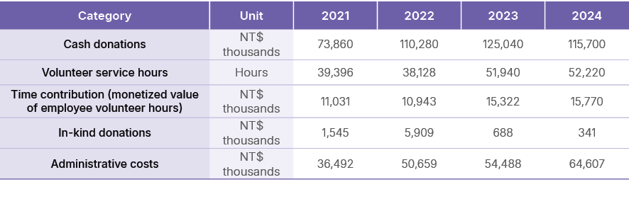 Note 2: “Administrative costs” refer to personnel and administrative expenses incurred in the execution of charitable activities, including staff costs for the Nan Shan Life Charity Foundation and the Branding Communication and Corporate Affairs Department.