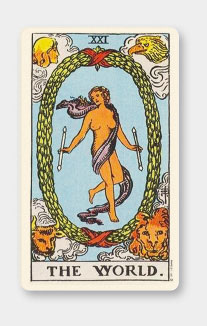 選到這張牌卡,代表是時候該替自己做一個階段性總結,前往下一個階段。你在擅長或喜愛的領域中總是非常投入,盡心盡力為自己和身邊的一切付出,而世界牌的出現正在提醒你,停下腳步,看看你是如何替自己累積許多資源,更重要的是感謝自己所創造的一切,接著前往內心渴望與嚮往之處。你之前所做的一切,已替自己累積足夠的能力進入下個階段。