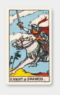 很多人在某些生命階段會遇到這張牌卡,寶劍騎士的出現代表著你是個很講求效率、行事作風都要快速的人。你想得快做得快,也很願意誠實說出自己的觀察,給予身邊的人回饋。寶劍代表真理與智慧,若能以溫柔感性的方式分享洞見,聆聽的人將獲得極大的支持。