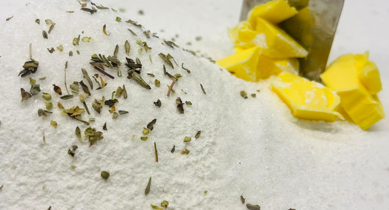 低筋麵粉140g、細砂糖10g、有鹽奶油30g、鹽1大匙、蛋黃1個、鮮奶20ml、義式綜合香料適量、泡打粉1大匙(選用,若未使用泡打粉,口感會較為扎實)