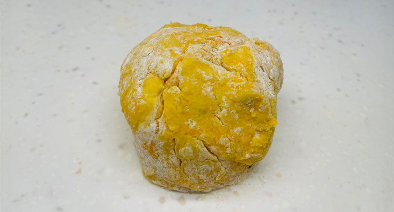 6. 混勻後,一面揉一面將麵團集結成工整的一大塊,若太過濕潤可酌量補充麵粉。